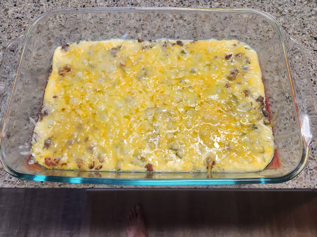 For dinner, tried something new, which was a big enough hit my kid asked for seconds. Anyone that's a parent KNOWS what a win that is. This was "bacon cheeseburger casserole"